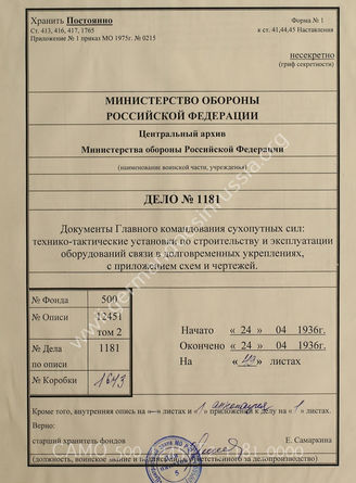 Akte 1181: Unterlagen des Höheren Nachrichten-Offiziers 1: Ausarbeitung des Inspekteurs der Festungen VIII beim Generalstab des Heeres im OKH – Taktische-technische Richtlinien für den Bau und Betrieb der Nachrichtenanlagen in ständigen Stellungen
