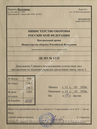Top Фонд 500 Опись 12451T2 Akte 1233: H.Dv. 17/1 – Aufklärung durch Nachrichtenmittel, Heft 1:...