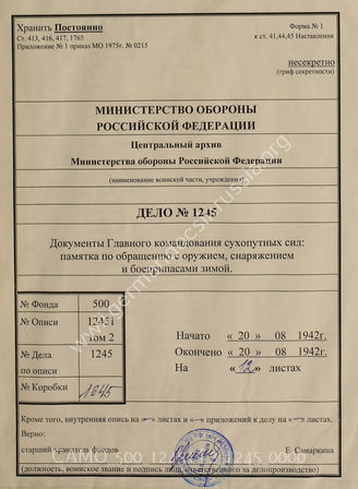 Akte 1245: D 158 – Behandlung von Waffen, Gerät und Munition im Winter, vom 20. August 1942