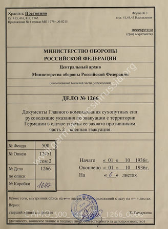 Akte 1266: Unterlagen der Ia-Abteilung des Gruppenkommandos 1: Richtlinien für die Räumung feindbedrohten Reichsgebiets, Heft 2: Militär-Räumung, vom 1. Oktober 1936, Berlin 1936
