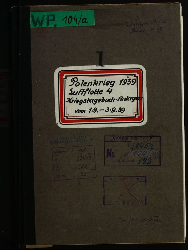 Дело 322. Приложения к военному дневнику 4-го воздушного флота о начале Второй мировой войны.
