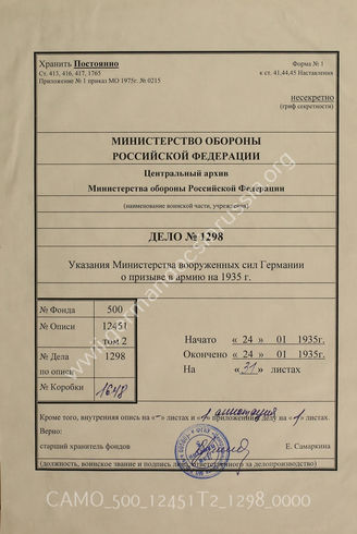 Top Фонд 500 Опись 12451T2 Akte 1298: Unterlagen des Gruppenkommandos 1: Weisung Nr. 100/35 de...