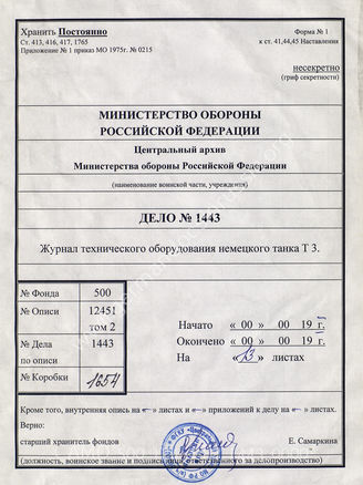 Top Фонд 500 Опись 12451T2 Akte 1443: Vorläufige Ausrüstungsliste zum Fahrgestell Panzer-Kampf...