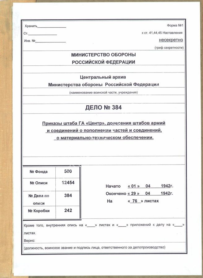Top Фонд 500 Опись 12454 - Группа армий "Б"/"Центр" Дело 384. Приказы Генерального штаба группы армий "Центр" и отчеты...