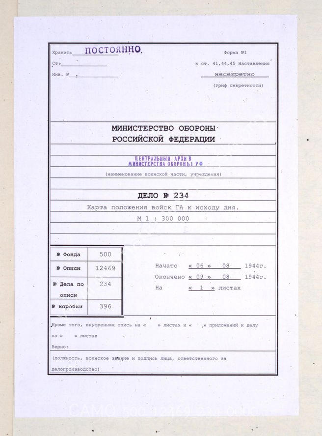 Дело 234. Документы оперативного отдела группы армий «Южная Украина»: карта положения войск группы армий «Южная Украина» от 06.08. – 09.08.1944 г. (приложение к журналу боевых действий), М 1: 300 000.