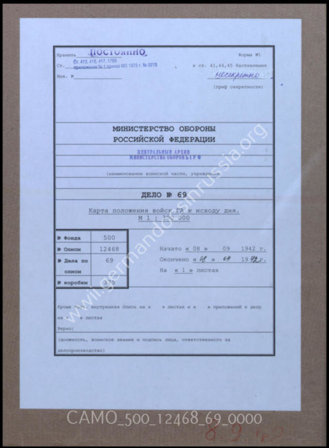 Дело 69: Документация оперативного отдела IIIb Генерального штаба сухопутных войск при ОКХ: карта расположения группы армий B на германо-советском фронте, включая сводку наличии танков – по состоянию на 8 сентября 1942 г., M 1:300.000