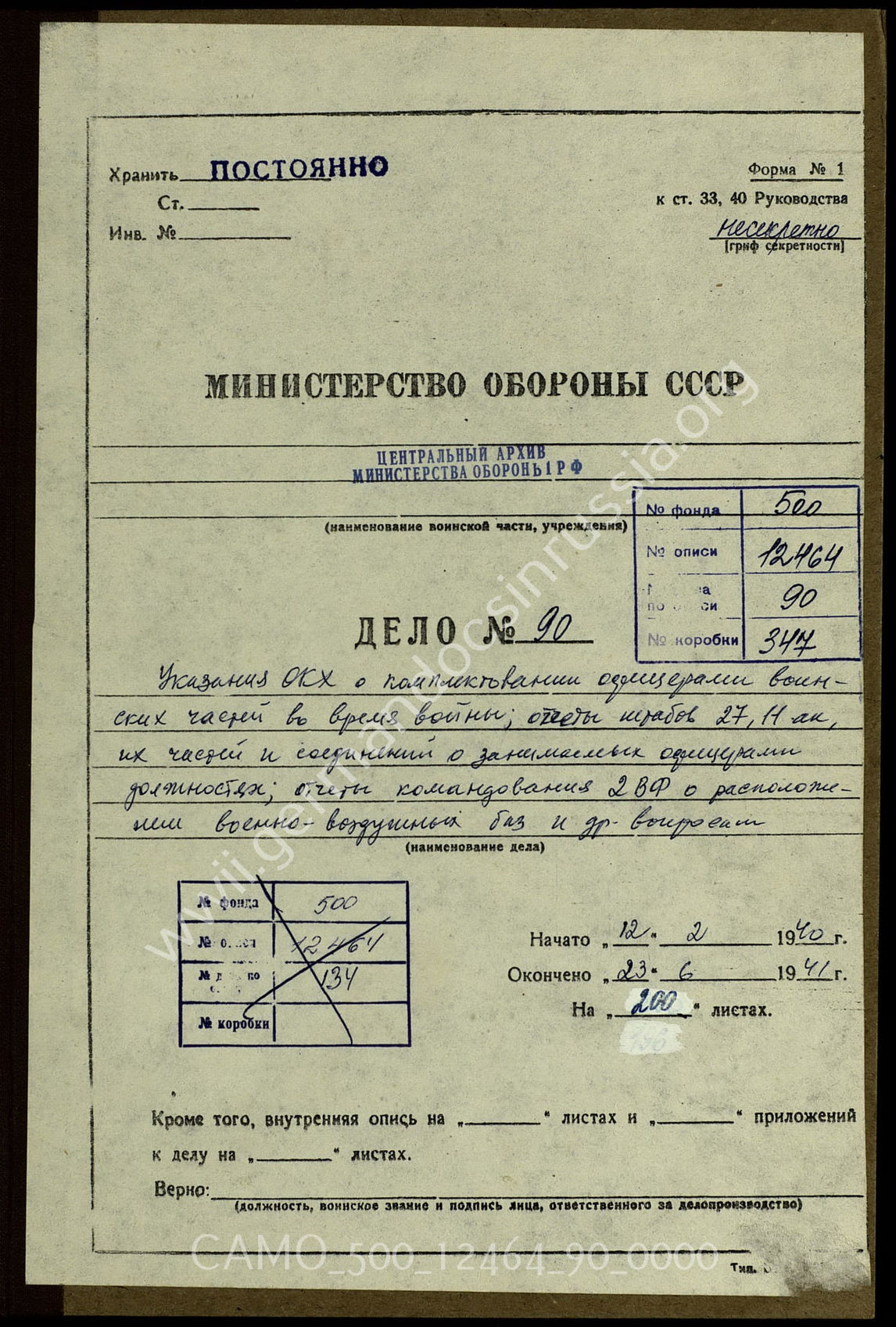 Top Фонд 500 Опись 12464 - Группы армий № 1 - 6 Дело 90. Указания, распоряжения и донесения Главного командования с...