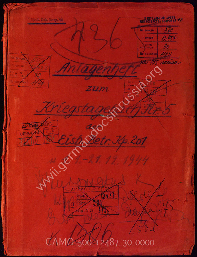 Дело 30. Документы 201-й железнодорожно - эксплуатационной роты (находилась в подчинении генерал – инспектора службы военных сообщений «Запад»): тетрадь приложений к журналу боевых действий № 5 за 01.01. – 14.08.1944 г.
