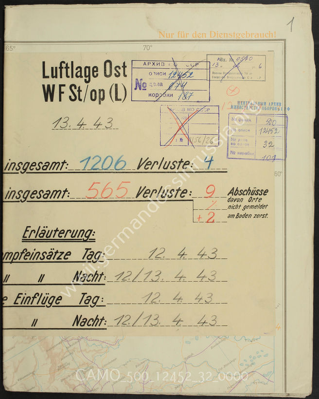 Top Фонд 500 Опись 12452 - Главное командование люфтваффе (ОКЛ) Дело 32. Боевые действия в воздухе на Восточном фронте 12-13 апреля...