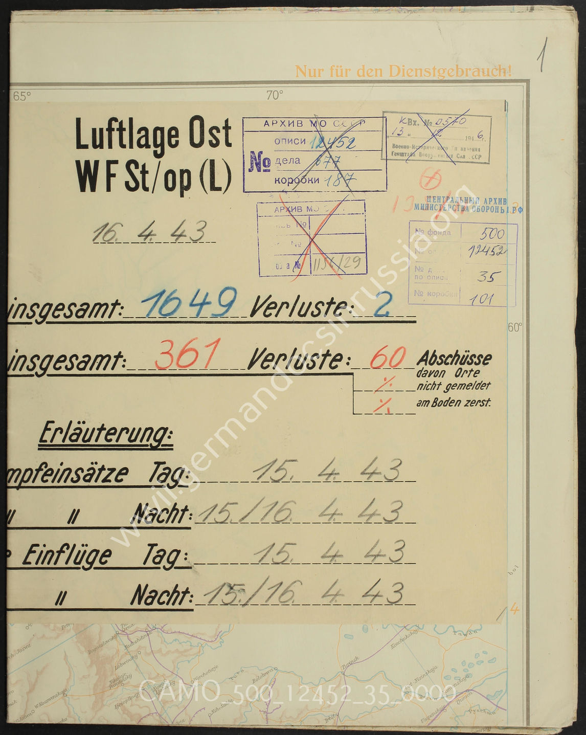 Top Фонд 500 Опись 12452 - Главное командование люфтваффе (ОКЛ) Дело 35. Боевые действия в воздухе на Восточном фронте 15-16 апреля...