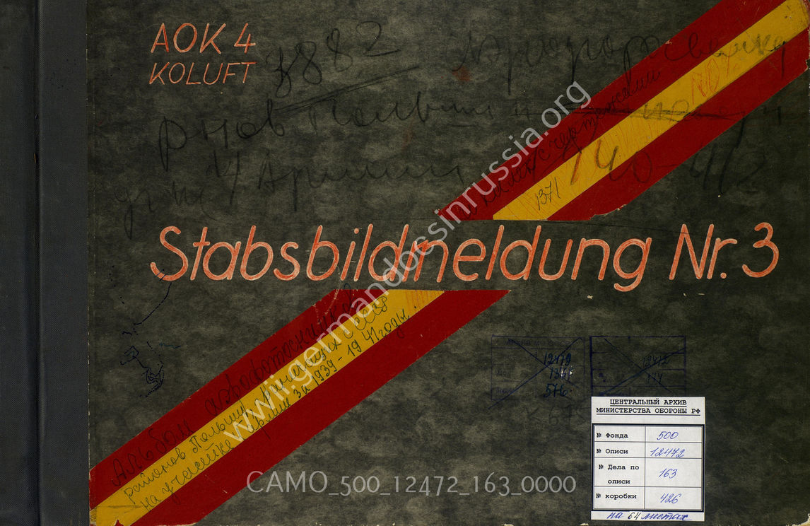 Top Фонд 500 Опись 12472 - Армии № 1-10, 1937 - 1945 гг. Дело 163. Документы командующего ВВС при штабе 4-й армии: фото - до...