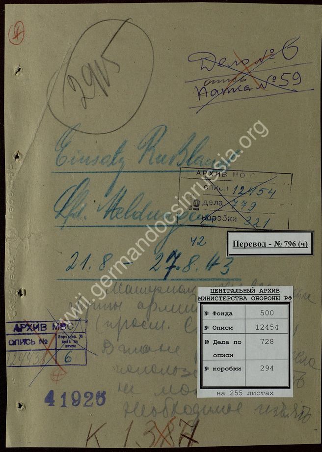 Дело 728. Документы разведывательного отдела группы армий «Центр»: текущие донесения (21.08.-27.08.1943).