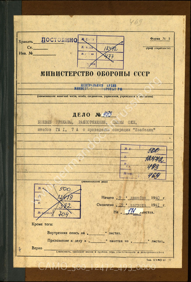 Дело 493. Документы оперативного отдела штаба 7-й армии: приказы, распоряжения, разведывательные донесения, записи совещаний, обзорные сведения по организационной структуре и дальнейшая переписка по операциям «Изабелла» и «Феликс»...