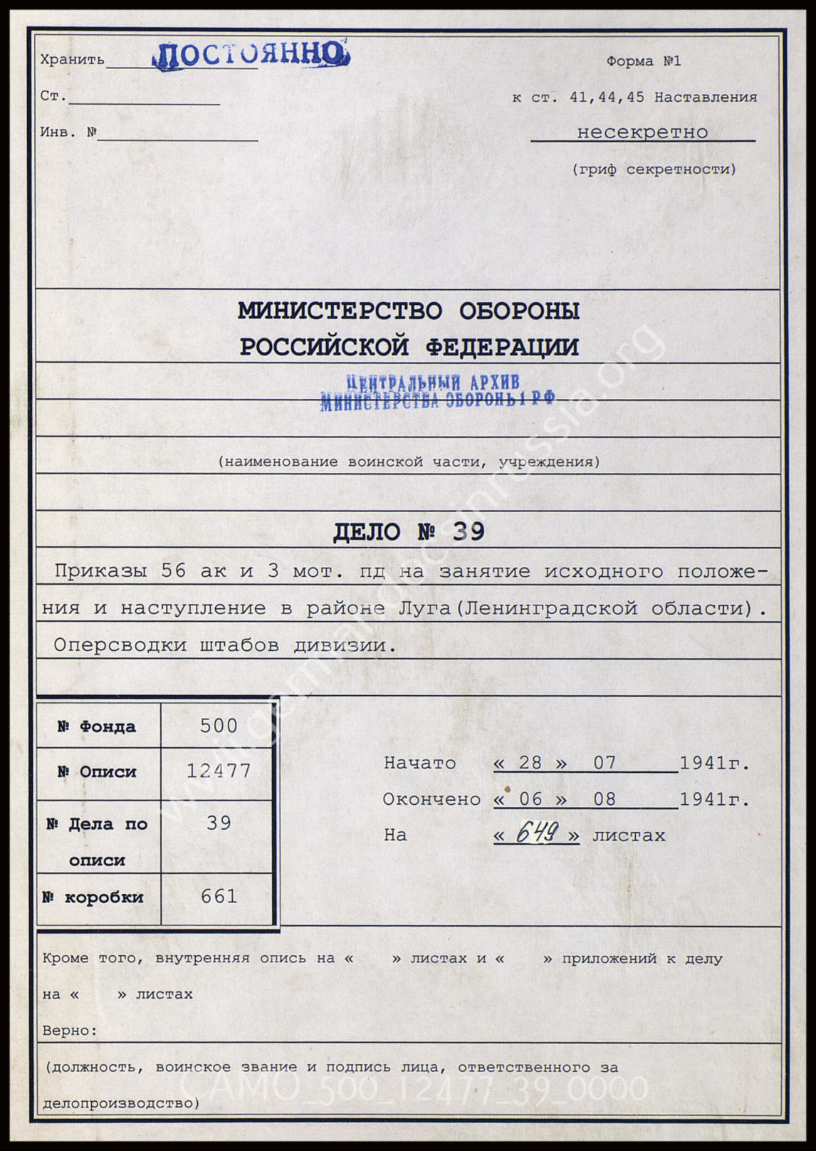 Дело 39. Документы оперативного отдела 3-й моторизованной пехотной дивизии: приложения к журналу боевых действий дивизии за июль/август 1941 г. - тактические донесения и радиограммы частей и подразделений дивизии, суточные донесения полков...