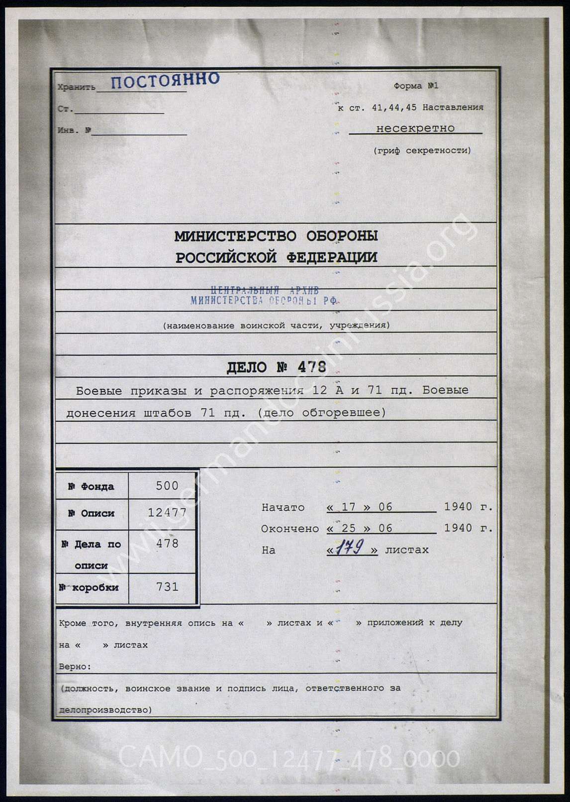 Дело 478. Документы оперативного отдела 71-го моторизованного пехотного полка 29-й моторизованной пехотной дивизии: тактические донесения и радиограммы батальонов и подразделений полка во время кампании против Франции...