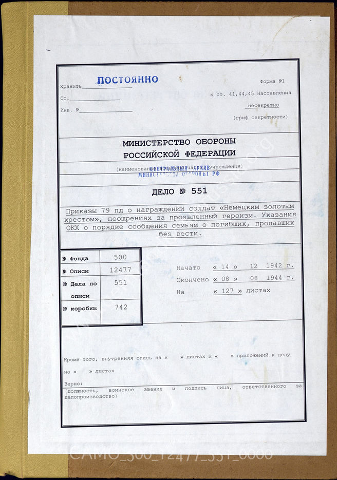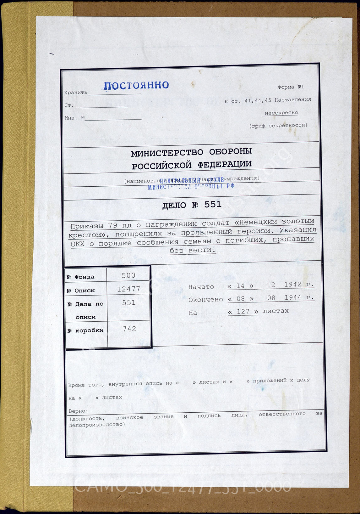 Top Фонд 500 Опись 12477 - Пехотные и охранные дивизии вермахта, 1934 - 1945 гг. Дело 551. Документы отдела кадров 79-й пехотной дивизии: приказы по...