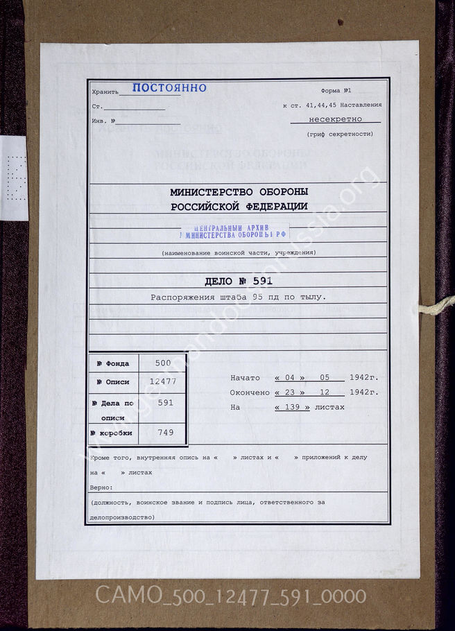 Дело 591. Документы службы тыла 1-го батальона 278-го пехотного полка 95-й пехотной дивизии: указания и распоряжения отдела тыла дивизии по снабжению, указания об обращении с перебежчиками и военнопленными...