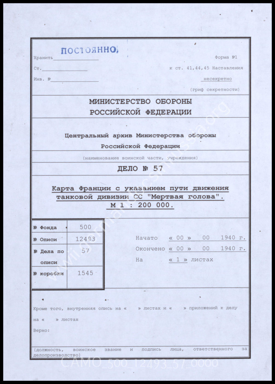 Top Фонд 500 Опись 12493 - Документы СС, войск СС и полиции Дело 57. Документы оперативного отдела 39-го армейского корпуса: ка...