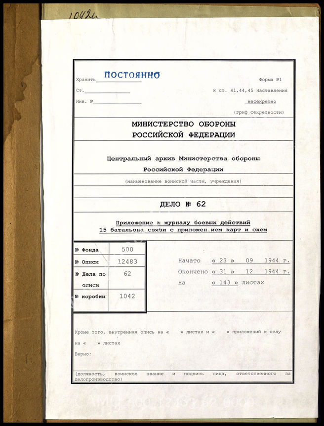 Top Фонд 500 Опись 12483 - Батальоны Дело 62. Документы оперативного отдела 15-го батальона связи 15-й п...