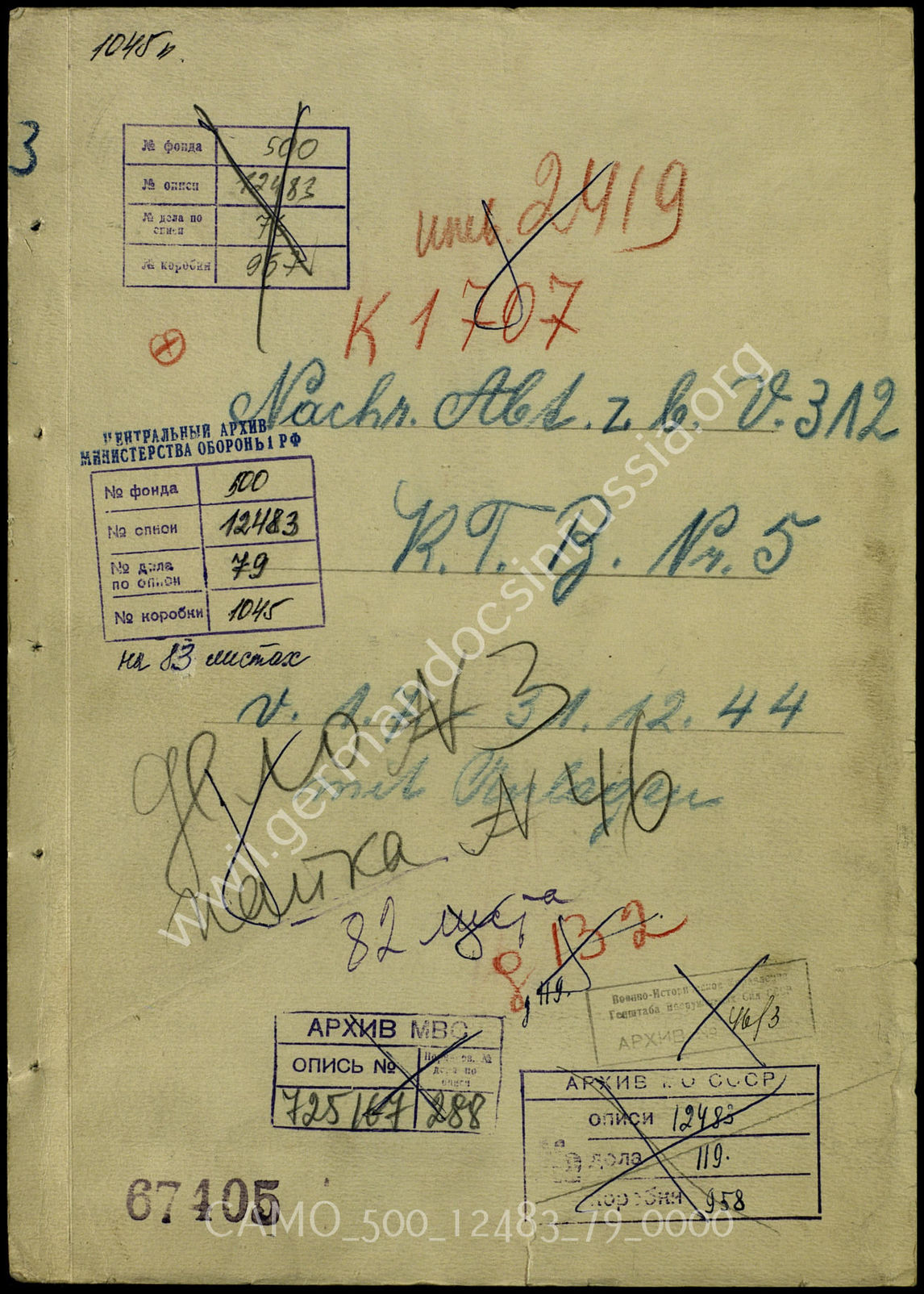 Дело 79. Документы оперативного отдела 312-го батальона связи особого назначения: журнал боевых действий № 5 312-го батальона связи особого назначения за 01.07. – 31.12.1944 г., включая список офицерского состава военного времени...